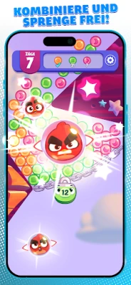 Tauche ein in dieses entspannende Rätselspiel! Platze Blasen, kombiniere und sprenge dich durch Tausende farbenfroher Level. Nutze mächtige Kettenreaktionen und die Hilfe deiner Lieblingscharaktere von Angry Birds, um Hindernisse zu überwinden. Erkunde eine drollige Cartoon-Fantasywelt voller Spaß und Herausforderungen. Die perfekte Art, dich zu entspannen!