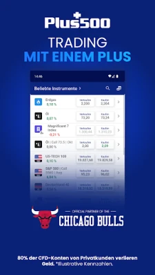 Tauchen Sie ein in die Welt der Finanzmärkte mit Plus500, dem führenden Anbieter für CFD-Handel in Deutschland**. Entdecken Sie über 2.800 CFDs auf eine breite Palette von Vermögenswerten, darunter globale Aktien, dynamische Devisenpaare, wichtige Indizes, Rohstoffe, Kryptowährungen***, ETFs und Optionen. Millionen von Nutzern vertrauen auf Plus500, um ihre Handelsstrategien umzusetzen. Starten Sie risikofrei mit einem unbegrenzten Demo-Konto und profitieren Sie von null Provisionen, geringen Spreads und keinen Einzahlungsgebühren für CFDs. Bleiben Sie mit Echtzeit-Benachrichtigungen per E-Mail, Push und SMS sowie Live-Kursen und detaillierten Diagrammen stets informiert.