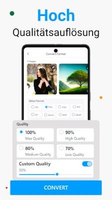 "PNG in JPG umwandeln-PDF JPEG" ist der schnelle und zuverlässige Konverter für Ihre digitalen Bilder und PDF-Dateien. Wandeln Sie mühelos PNG zu JPG und andere Formate um, optimieren und verwalten Sie Ihre Dateien effizient in einer benutzerfreundlichen App.