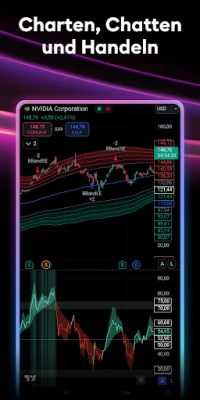 Werden Sie Teil der pulsierenden TradingView-Community, dem größten sozialen Netzwerk für Händler und Investoren weltweit. Vernetzen Sie sich mit Millionen von Gleichgesinnten, lernen Sie aus kollektiver Erfahrung und diskutieren Sie innovative Handelsstrategien in Echtzeit. Unterstützt wird diese Interaktion durch eine Analyseplattform, deren fortschrittliche Charting-Funktionen selbst anspruchsvollste Desktop-Lösungen übertreffen. Genießen Sie den vollständigen Funktionsumfang direkt auf Ihrem Mobilgerät, mit über zehn spezialisierten Chart-Typen – von klassischen Liniencharts bis hin zu Renko- und Kagi-Visualisierungen – sowie einer umfassenden Suite an Indikatoren, Strategien und Zeicheninstrumenten wie Gann oder Elliot Wave.