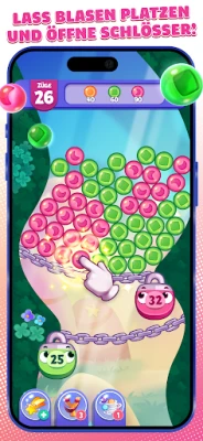 Tauche ein in dieses entspannende Rätselspiel! Platze Blasen, kombiniere und sprenge dich durch Tausende farbenfroher Level. Nutze mächtige Kettenreaktionen und die Hilfe deiner Lieblingscharaktere von Angry Birds, um Hindernisse zu überwinden. Erkunde eine drollige Cartoon-Fantasywelt voller Spaß und Herausforderungen. Die perfekte Art, dich zu entspannen!