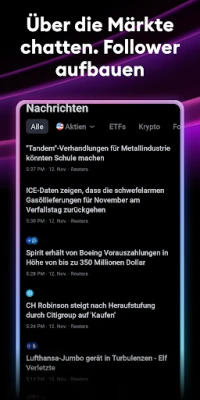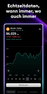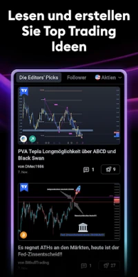 Werden Sie Teil der pulsierenden TradingView-Community, dem größten sozialen Netzwerk für Händler und Investoren weltweit. Vernetzen Sie sich mit Millionen von Gleichgesinnten, lernen Sie aus kollektiver Erfahrung und diskutieren Sie innovative Handelsstrategien in Echtzeit. Unterstützt wird diese Interaktion durch eine Analyseplattform, deren fortschrittliche Charting-Funktionen selbst anspruchsvollste Desktop-Lösungen übertreffen. Genießen Sie den vollständigen Funktionsumfang direkt auf Ihrem Mobilgerät, mit über zehn spezialisierten Chart-Typen – von klassischen Liniencharts bis hin zu Renko- und Kagi-Visualisierungen – sowie einer umfassenden Suite an Indikatoren, Strategien und Zeicheninstrumenten wie Gann oder Elliot Wave.